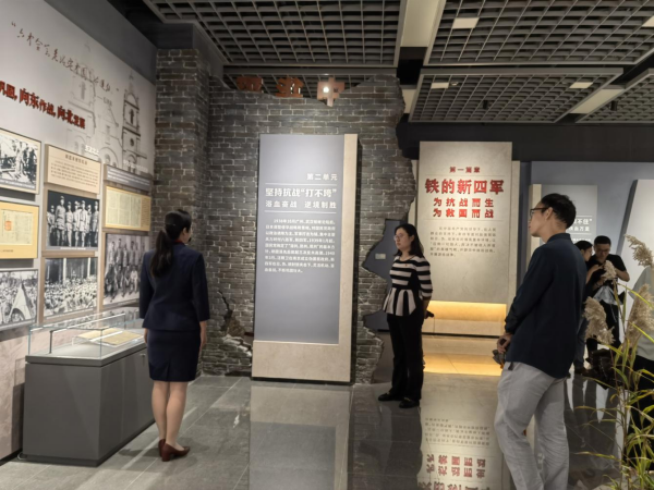 沉浸式的参观让支部党员了解到新四军是中国共产党领导下的主要抗日武装力量之一,与八路军等相呼应,与正面战场相配合,广泛开展敌后游击战争,建立和发展抗日民主根据地,为中国人民抗日战争和世界反法西斯战争的胜利作出了巨大贡献。他们为了世界正义和民族大义不畏强敌、不怕牺牲,毅然挺进大江南北、驰骋江淮河汉,直插日伪军指挥中枢和补给通道所在的华中地区,在党的领导下勇毅前行、发展壮大,在日、伪、顽封锁夹击下英勇斗争、团结抗战,在人民群众拥护支持下披荆斩棘、走向胜利,被誉为“铁军”,成为“华中人民的长城”,谱写了一部为抗战而生、为救国而战、从逆境奋起、以铁血铸魂的壮丽史诗。