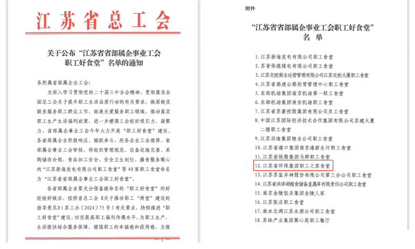 省环保集团“职工之家”荣获省部属企事业工会“职工好食堂”