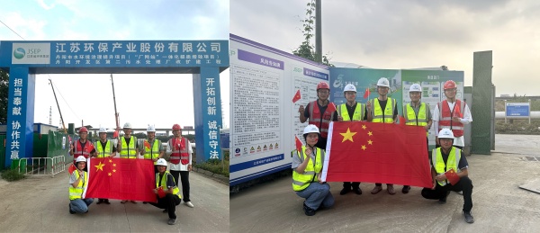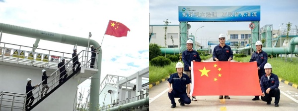 礼赞新中国阔步新征程丨江苏环保产业股份有限公司一线员工与国旗同框,致敬祖国76华诞